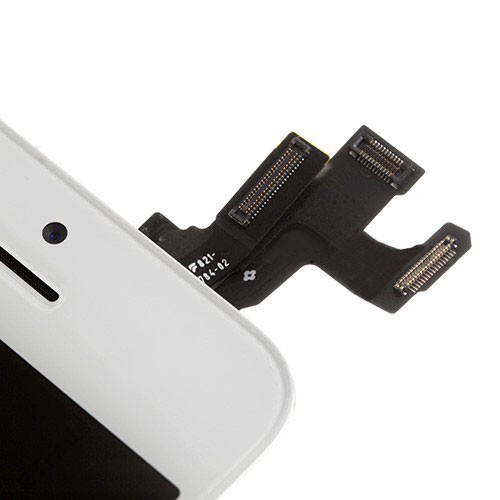 Un écran pré-assemblé comporte la caméra avant, le haut-parleur interne et la plaque métallique.