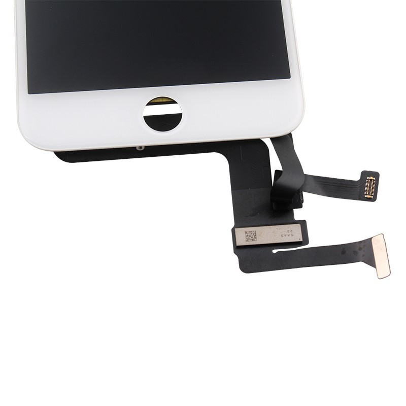 Votre bloc écran sera composé de la plaque métallique assemblée à votre écran, d'un haut-parleur interne et de la caméra avant avec la nappe de proximité. Sur certains modèles, vous aurez aussi le bouton home fourni avec.