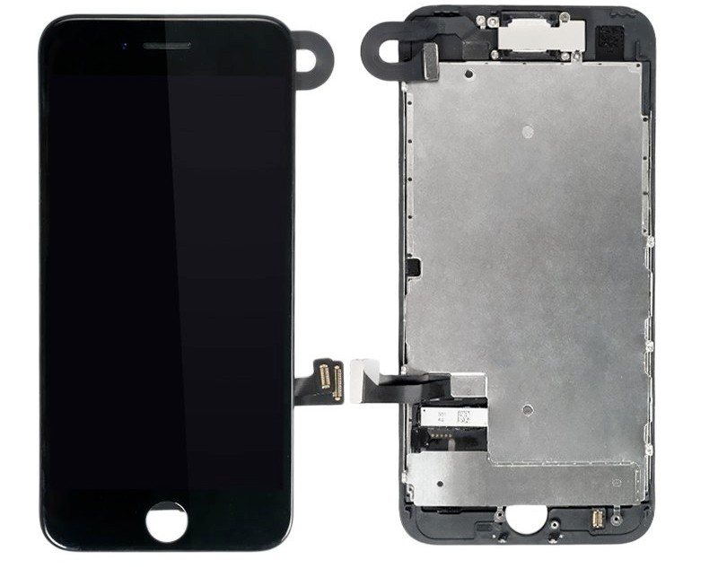 Votre bloc écran sera composé de la plaque métallique assemblée à votre écran, d'un haut-parleur interne et de la caméra avant avec la nappe de proximité. Sur certains modèles, vous aurez aussi le bouton home fourni avec.