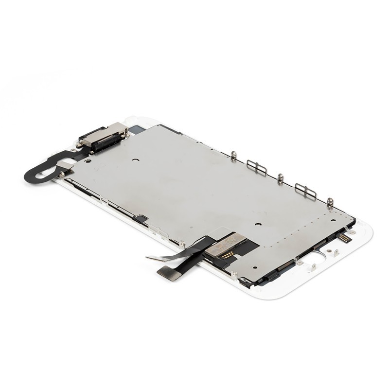 Votre bloc écran sera composé de la plaque métallique assemblée à votre écran, d'un haut-parleur interne et de la caméra avant avec la nappe de proximité. Sur certains modèles, vous aurez aussi le bouton home fourni avec.